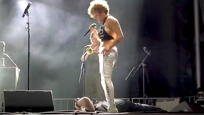 في حادثة مفاجئة وصادمة، استدعت المغنية صوفيا أوريستا، عضو في فرقة "براس أغينست" أحد المعجبين على المسرح وجعله يستلقي، ثم تبوَّلت على وجهه بينما كانت الفرقة تعزف.