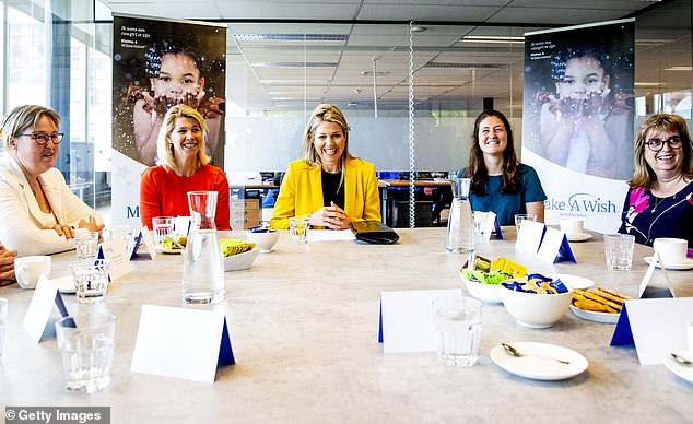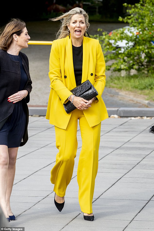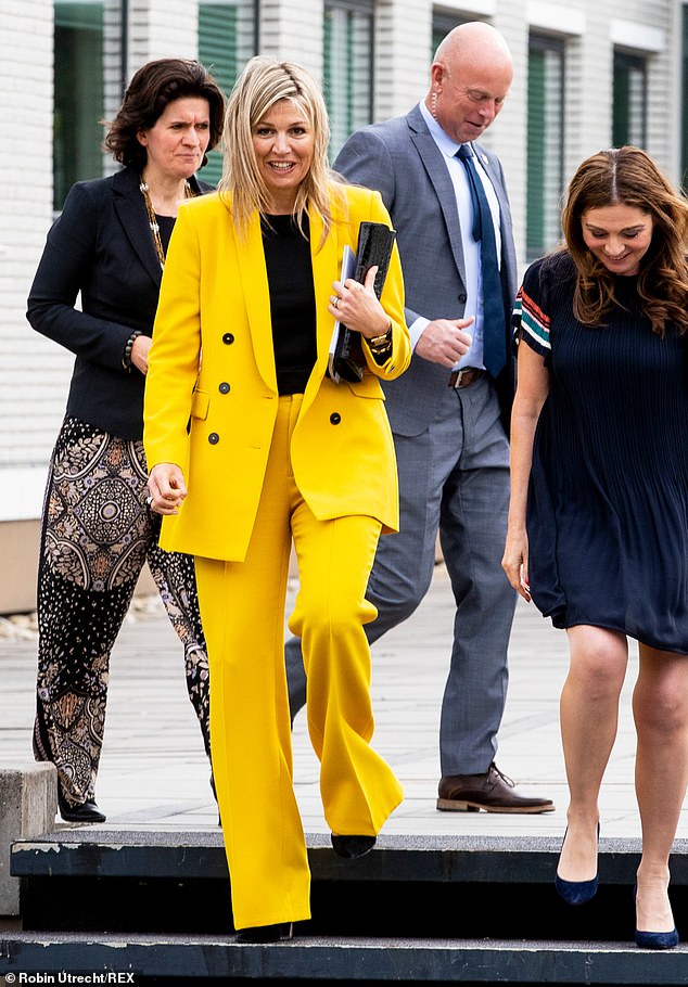 تألقت ملكة هولندا، ماكسيما، باللون الأصفر أثناء زيارتها لجمعية خيرية للأطفال في هولندا اليوم الأربعاء.