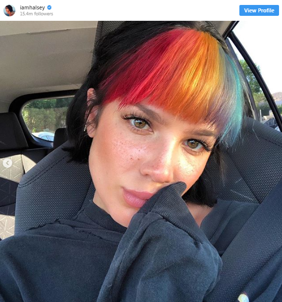 تعد هالزي واحدة من أكثر النجمات اللواتي تفاجئنا بإطلالاتها، وخاصة قصّات والوان شعرها الجريئة، فبعد ألوان الوردي والأصفر واعتماد القصات القصيرة للغاية أو ذات الجدائل، اختارت هالزي حاليًا قصّة الشعر القصير الذي يصل إلى الذقن باللون الأسود مع غرة أمامية من ألوان قوس قزح.