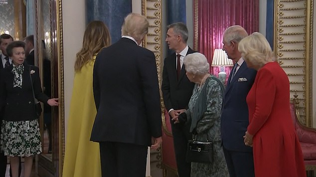 ظهر شريط فيديو يوم أمس الاربعاء من حفل الناتو في قصر باكنغهام ترك المراقبين الملكيين يخمنون ما حدث بالفعل بين الملكة إليزابيث والأميرة آنا.