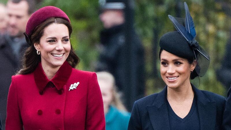 أما كيت فكانت بنفس مستوى أناقة نظيرتها ميغان حيث ارتدت معطف من الصوف مستوحى من ملابس الجيش وقبعة ناعمة وأكملت مظهرها بالأقراط اللؤلؤية البيضاء.