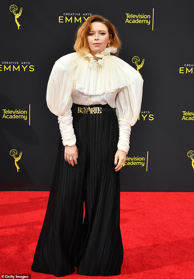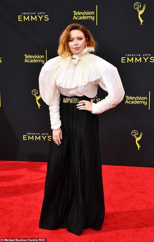 وارتدت ناتاشا قميص أبيض بكشاكش ضخمة من عند الكتف وياقة مطابقة مستوحى من عصر شكسبير من مجموعة Rodarte نسّقته مع بنطال أسود عريض ذو خصر عال ومزيّن بكسرات متعددة.