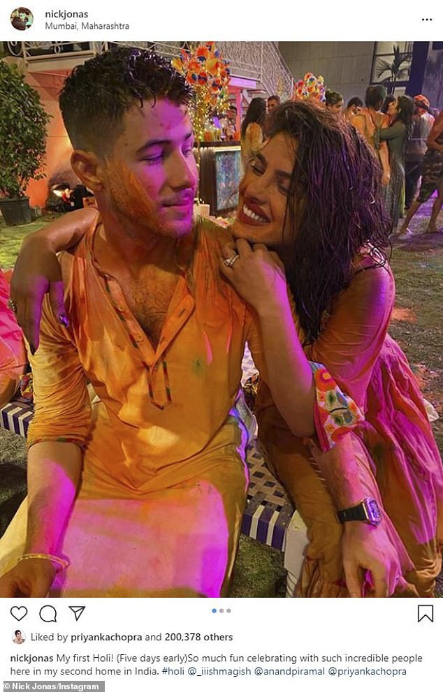 واحتفلت "بريانكا" و"نيك" أيضًا بمهرجان الألوان "هولي" في حفلة بوليوود في بومباي في شهر مارس قبل وقت قصير من دخول الهند في إغلاق بسبب فيروس كورونا.
