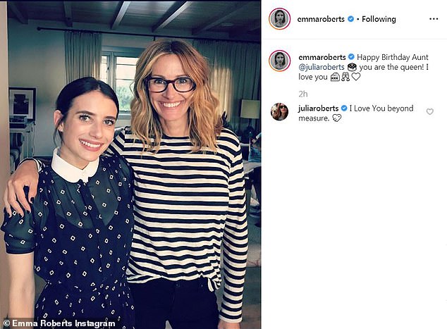ومن أجمل المعايدات التي وصلتها كانت من ابنة أخيها الممثلة الأمريكية الحنساء "إيما روبرتس"، التي نشرت صورة تجمعها بعمتها عبر حسابها على موقع "إنستغرام"، وكتبت: "كل عام وأنت بخير عمتي، أنت ملكة.. أحبك".