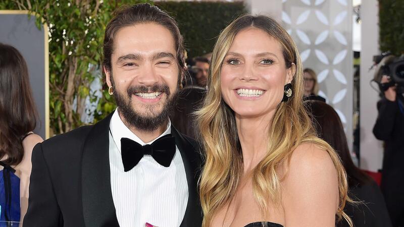 أما توم فقد اختار الظهور ببدلة سوداء كلاسيكية من المخمل، كما أنه أسدل شعره الأشقر المموّج بطريقة مطابقة لتسريحة هيدي.