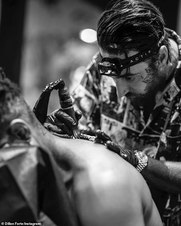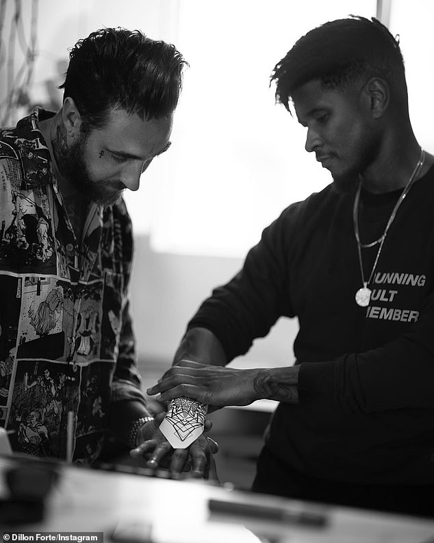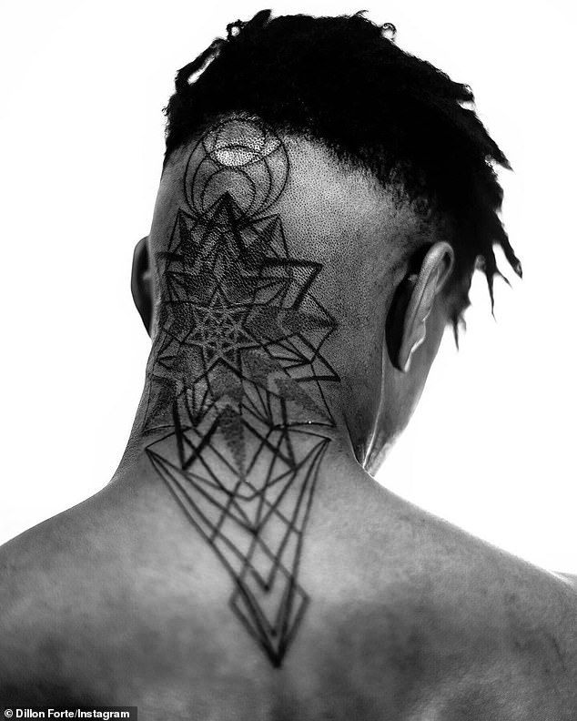 واستمرت العملية لمدة 3 ساعات متواصل على يد خبير الوشوم "ديلون فورتي" الذي نشر من جهته صورة لعمله الفني عبر حسابه على موقع "إنستغرام" باللونين الأسود والابيض، أوضح أنه مستوحى من فكرة التحول، وكتب: أنه عبارة عن هندسة مقدسة وتعويذة بربرية قديمة للاحتفال بالنقاط الأساسية في السماء والسماح للمسافرين بالعثور على طريقهم عبر مسافات شاسعة".