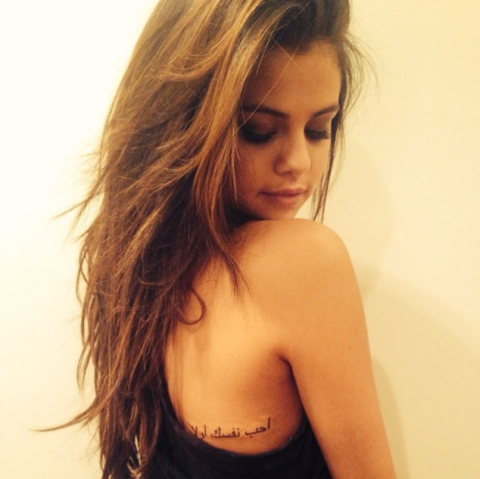 أثارت المغنية الأمريكية سيلينا غوميز الجدل بعد ظهورها بتاتو باللغة العربية بعبارة "أحب نفسك أولًا" وذلك بعد أزمة زواج جاستين بيبر والحالة النفسية السيئة التي اصابتها.