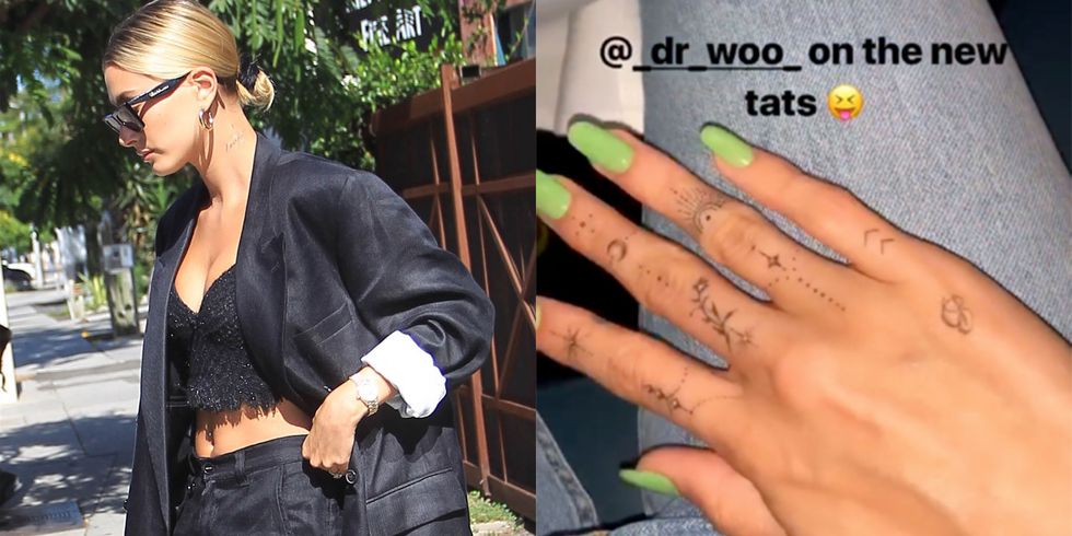 قبيل حفل زفافها الثاني من المغني الكندي جاستين بيبر، ظهرت عارضة الأزياء الأمريكية هايلي بالدوين بعدة وشوم جديدة على أصابعها وعلى رقبتها وكانت على هيئة زخارف ورسومات من الزهور والنجوم والشمس والقمر وهذا تعبيرًا عن فرحتها بزفافها الثاني وعن مدى حبها لزوجها.