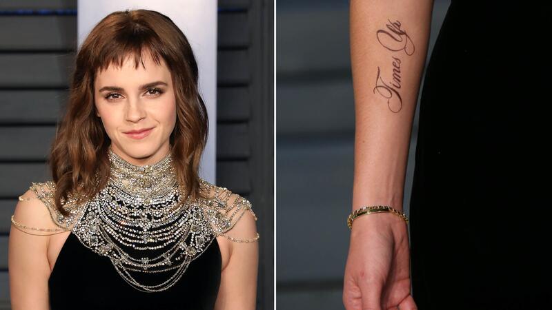 شوهدت نجمة افلام هاري بوتر الشهيرة بوشم لحركة #TimesUp movement هي حركة ضد التحرش الجنسي، اسسها مشاهير هوليوود بعد قضايا هارفي وينستون.
