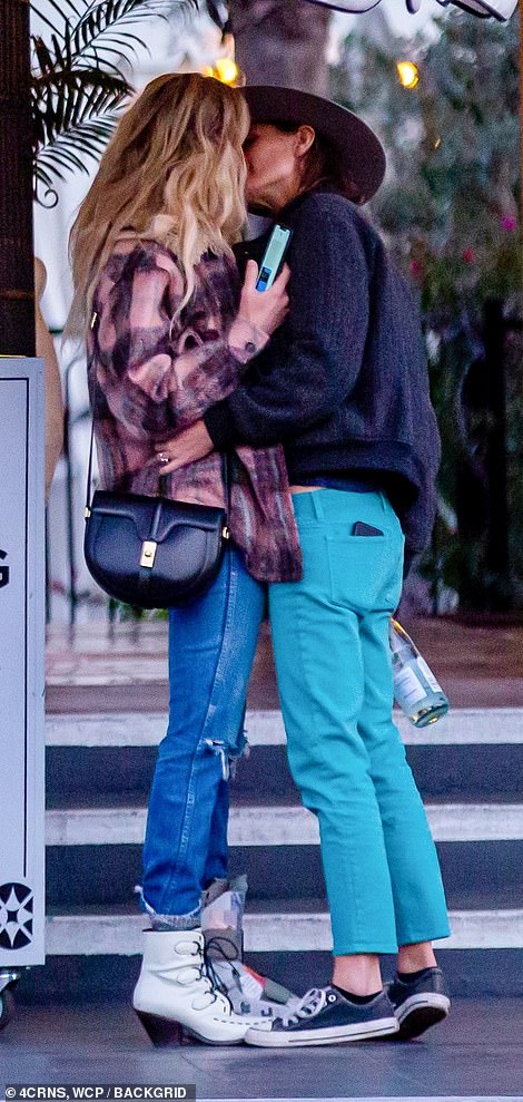 شوهدت السيدتان وهما تتبادلان القبلات أثناء مغادرتهما لأحد الفنادق في منتجع جنوب كاليفورنيا الراقي/ قبل أن ترصدا من جديد في وضع حميمي في سيارة النجمة القديمة من طراز فورد موستانج.