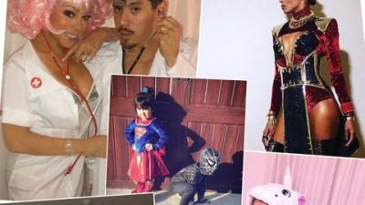 اختارت النجمة الأمريكية وابنتها الكبرى ارتداء أزياء حصان وحيد القرن، بينما زوجها وطفليها الآخرين ارتديا أزياء على شكل زرافة.