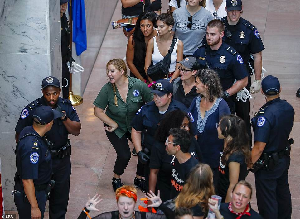 وكانت النجمة الأمريكية الكوميدية "إيمي شومر" وعارضة الأزياء والممثلة الشهيرة "إميلي راتاجكوفسكي" من بين 300 ناشطٍ اعتقلوا على إثر اقتحامهم ردهة المبنى يوم الإثنين الماضي قبل تنظيمهم الاعتصام.