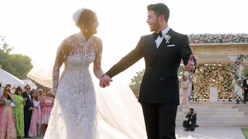وفي وقت سابق، نشر جوناس لقطة من حفل زفافهما الغربي، اللقطة عبارة عن الثّنائي وهُما يقطعان كعكة زفافهما الضّخمة المؤلفة من 4 طبقاتٍ غير عادية، استوحيا تصميمها من المكان الباذخ الذي أقاما فيه حفل زفافهما "قصر عُميد باهوان" في مدينة جودبور الهندية، كما قطعاها باستخدام سيفٍ خاص، وعلّق: "في مثل هذا اليوم قبل أسبوع".