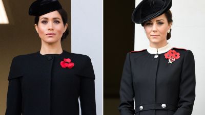 وعلى صعيد الإطلالة، تألَّقت "ماركل"، الحامل بطفلها الأول، معطف أسود طويل ذو تفاصيل أنيقة عند الأكتاف من توقيع دار الأزياء الفرنسية "جيفينشي"، وتزيَّنت بقبعة رأس سوداء. بينما اختارت "كيت" جاكيت أسود من توقيع مصممها المفضل "أليكساندر ماكوين" زُيِّنَ بثلاث من أزهار الخشخاش، كما اعتمرت قبعة رأس سوداء.