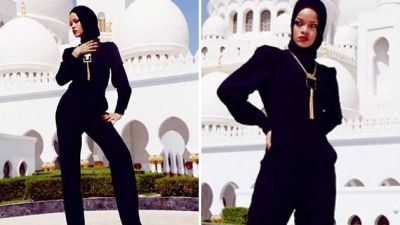 وفي هذه المُناسبة الخّاصة، حرصت ريهانا أن ترتدي إطلالة مُناسبة نوعاً ما لروح البلد العربي الذي تزوره، فلم ترتدي إطلالة جريئة كعادتها، بل استعاضت عن ذلك بفُستانٍ ذهبي اللون، جاء بستايل معطف الترنش، بياقته المُزدوجة وحزام الخصر.