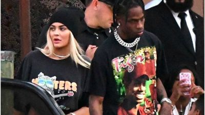 توجَّهت "كايلي جينر" (20 عامًا) ووالد طفلتها "ترافيس سكوت" (25 عامًا) لقضاء سهرتهما في مطعم المشاهير "Nobu"، حيث اختارت النجمة الأمريكية تيشيرت أسود ابسيط، وبنطال رياضي أسود اللون، وأكملت إطلالتها بحقيبة يد جلدية سوداء، ونسقت إطلالتها بمعطف فراء أحمر. بينما اختار "سكوت" تيشيرت أسود، وقميص أسود بسيط، واعتمد تسريحة الجدائل الرفيعة.