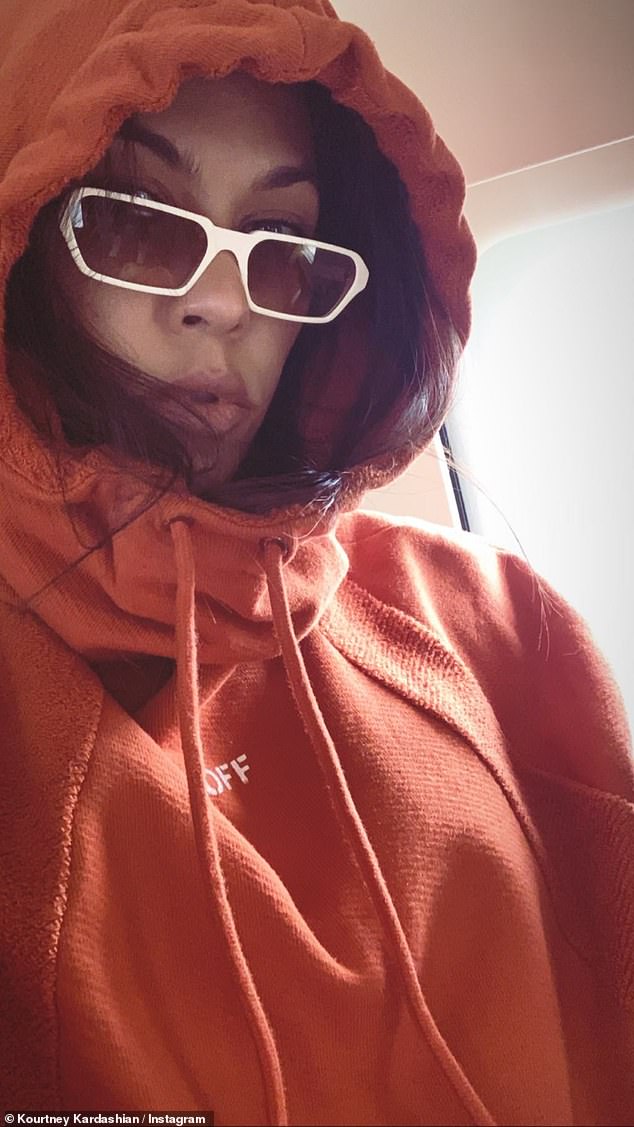 ونشرت "كورتني" صورة سيلفي أمام المرآة داخل جناحها الفندقي في Arctic TreeHouse عبر خاصية "إنستغرام ستوري"، تظهر مُرتديةُ بدلة رياضية باللون البرتقالي.