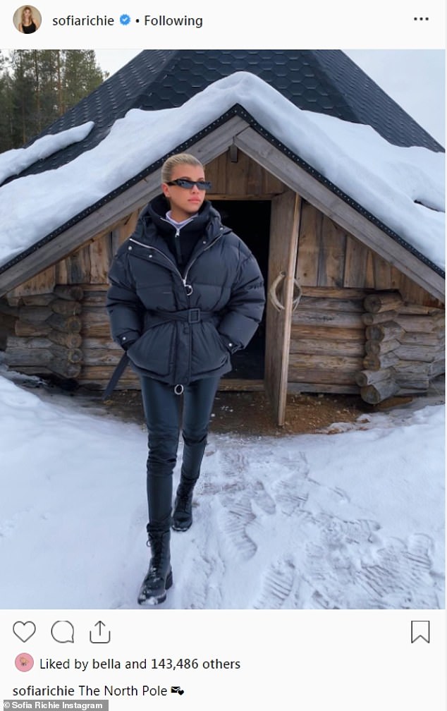 كما شاركت "صوفيا" متابيعها صوتين لها، إحداها أمام كوخ خشبي مُرتديةً معطف أسود دافئ وجزمة سوداء، وأخرى جالسةً بروب الاستحمام أمام نافذة زجاجية، وعلَّقت: "القطب الشمالي".