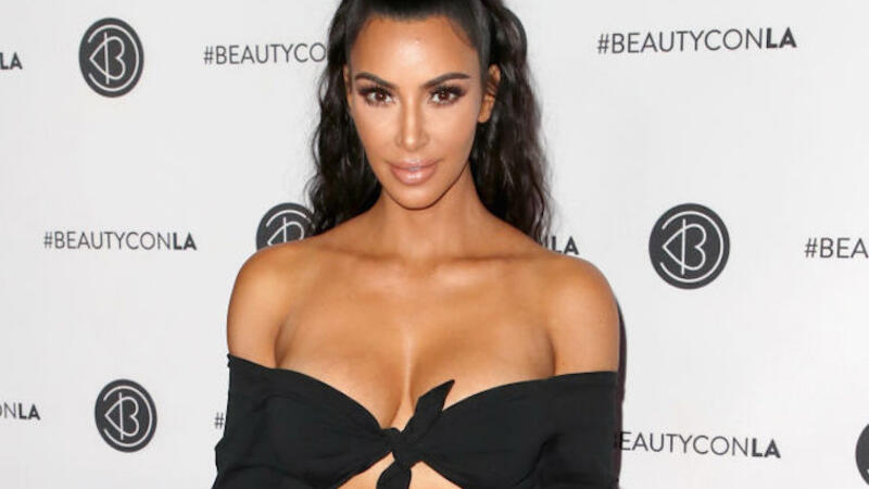 بالصور: كيم بإطلالة فاضحة وصدر مكشوف في حفل Hollywood Beauty Awards.. وشاب يرافقها بدل زوجها!