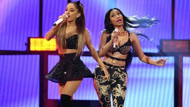 بالصور: نيكي ميناج شبه عارية داخل بركة سباحة.. وأريانا غراندي برفقتها!