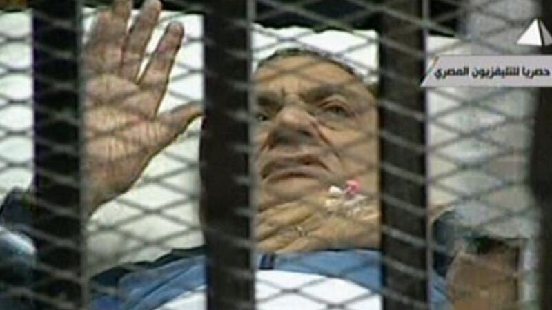 مبارك كما ظهر في جلسة محاكمته الثانية.
