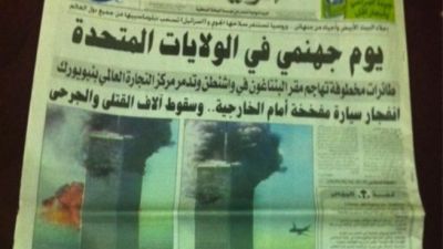 ويشاركنا فؤاد الفرحان بمجموعة من الصور للصفحات الأولى للجرائد السعودية الصادرة في صبيحة اليوم التالي للحادي عشر من سبتمبر نقتبس من أحدها العنوان التالي: