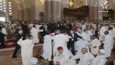 انتشر فيديو عبر موقع اليوتيوب لشاب حاول الهجوم على ملك المغرب خلال صلاة الجمعة، وفي تفاصيل الحادثة أنه في يوم الجمعة في مسجد الحسن الثاني بالدار البيضاء انطلق شاب من بين المصلين صوب الملك محمد السادس ملك المغرب، بطريقة مفاجئة وسريعة، وذلك أثناء تحرك الملك ناحية باب الخروج من المسجد.وتمكنت فرق الحراسة التي كانت أسرع، من القبض على الشاب بمساعدة الحاضرين، قبل أن يصل إلى الملك.وشهد الفيديو تعليقات عدة مع موقع اليوتيوب أبرزها: