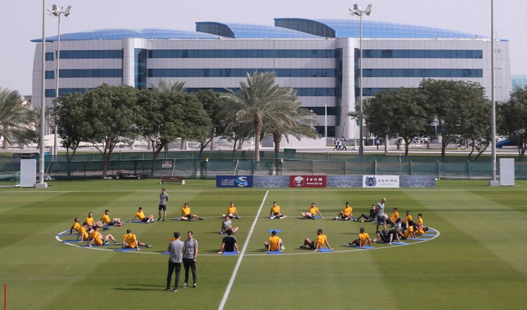 لاعبو يوفنتوس يخضعون لجلسة تدريبية في الدوحة خلال الاستعدادات للقاء كأس السوبر الإيطالي الذي سيجمعهم بميلان يوم الجمعة الـ 23 من ديسمبر.