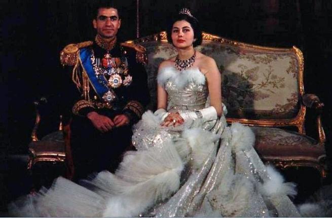 الأميرة فوزية وزوجها رضا بهلوى ولى العهد الإيرانى