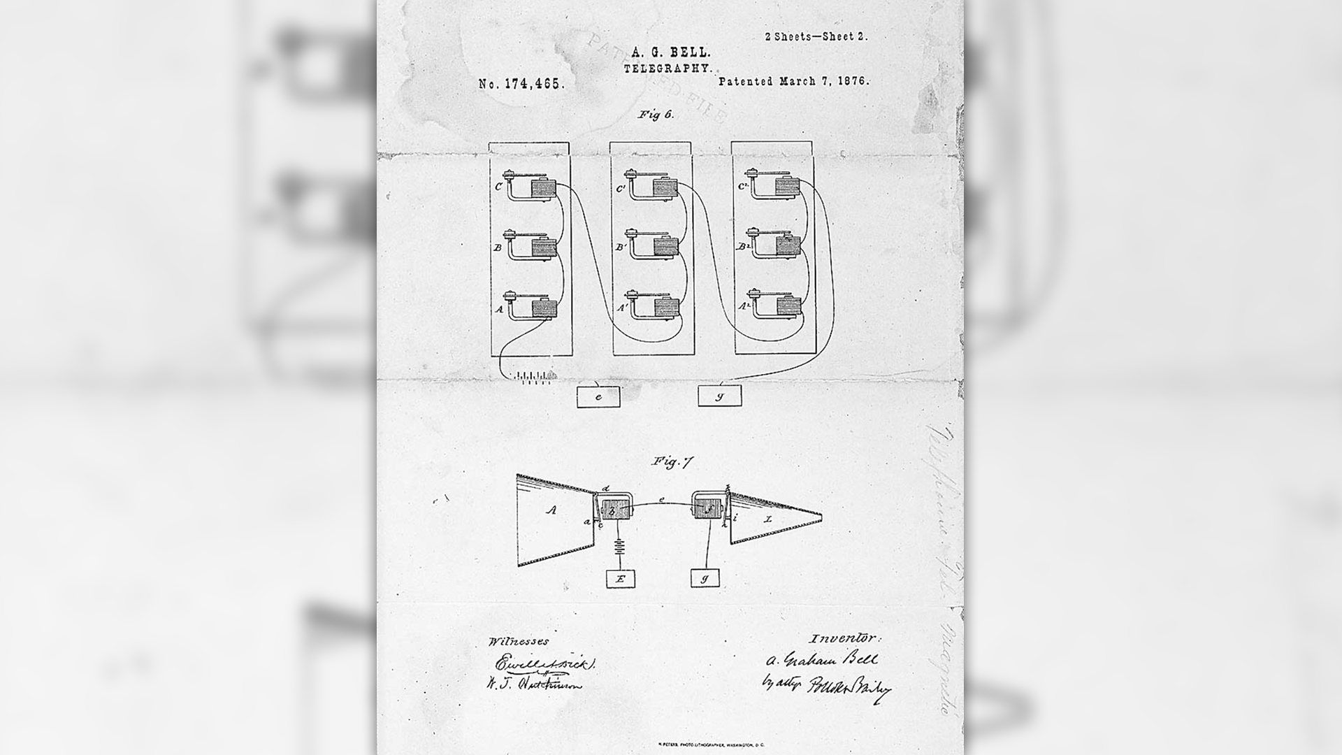 6.الهاتف: كان ألكسندر جراهام بيل أول من حصل على براءة اختراع للهاتف الكهربائي في عام 1876. تم تصوير رسم براءة اختراعه.