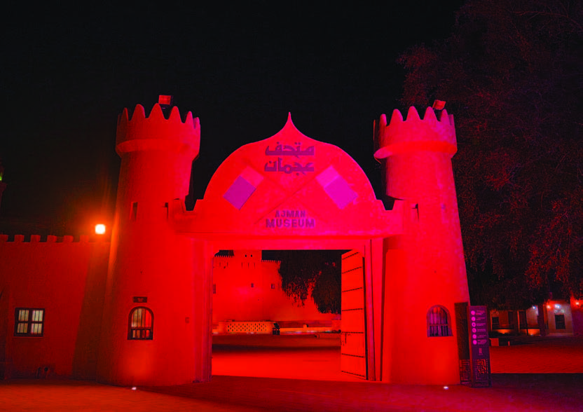 عجمان: زينت واجهة هيئة السياحة باللون الأحمر، والحي التراثي، ومبنى دائرة البلدية والتخطيط، وتقاطع جسر الشيخ حميد بن راشد، وتقاطع جسر الشيخ مكتوم، وتقاطع جسر الروضة، وأدنوك الزوراء.