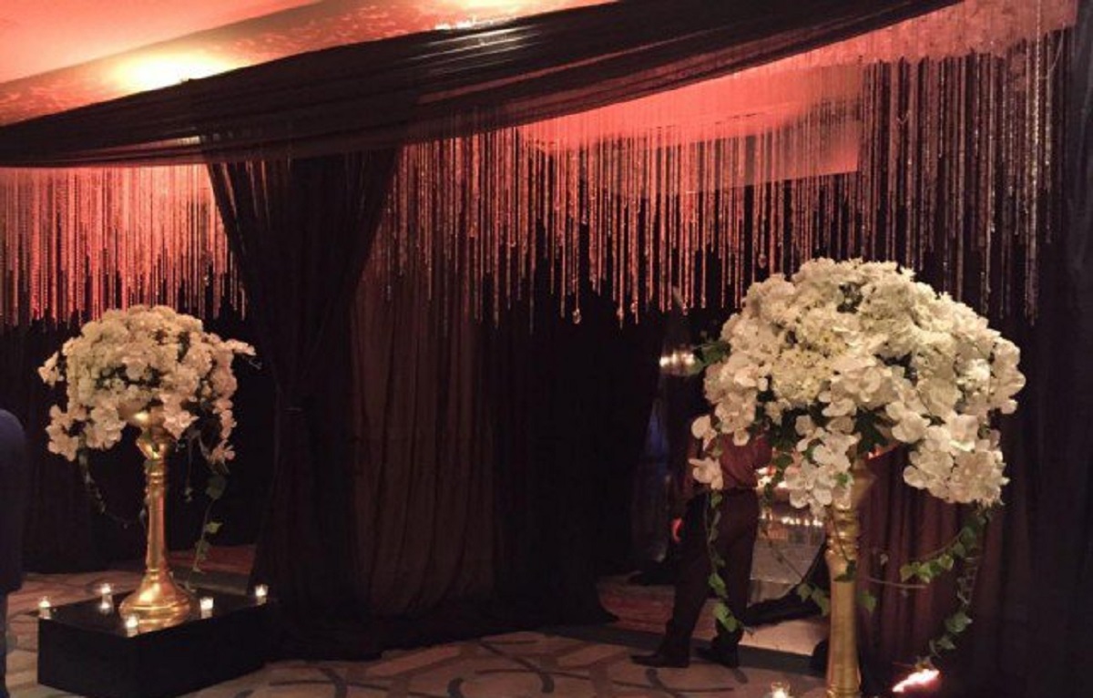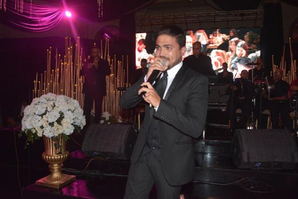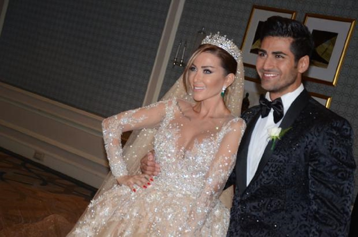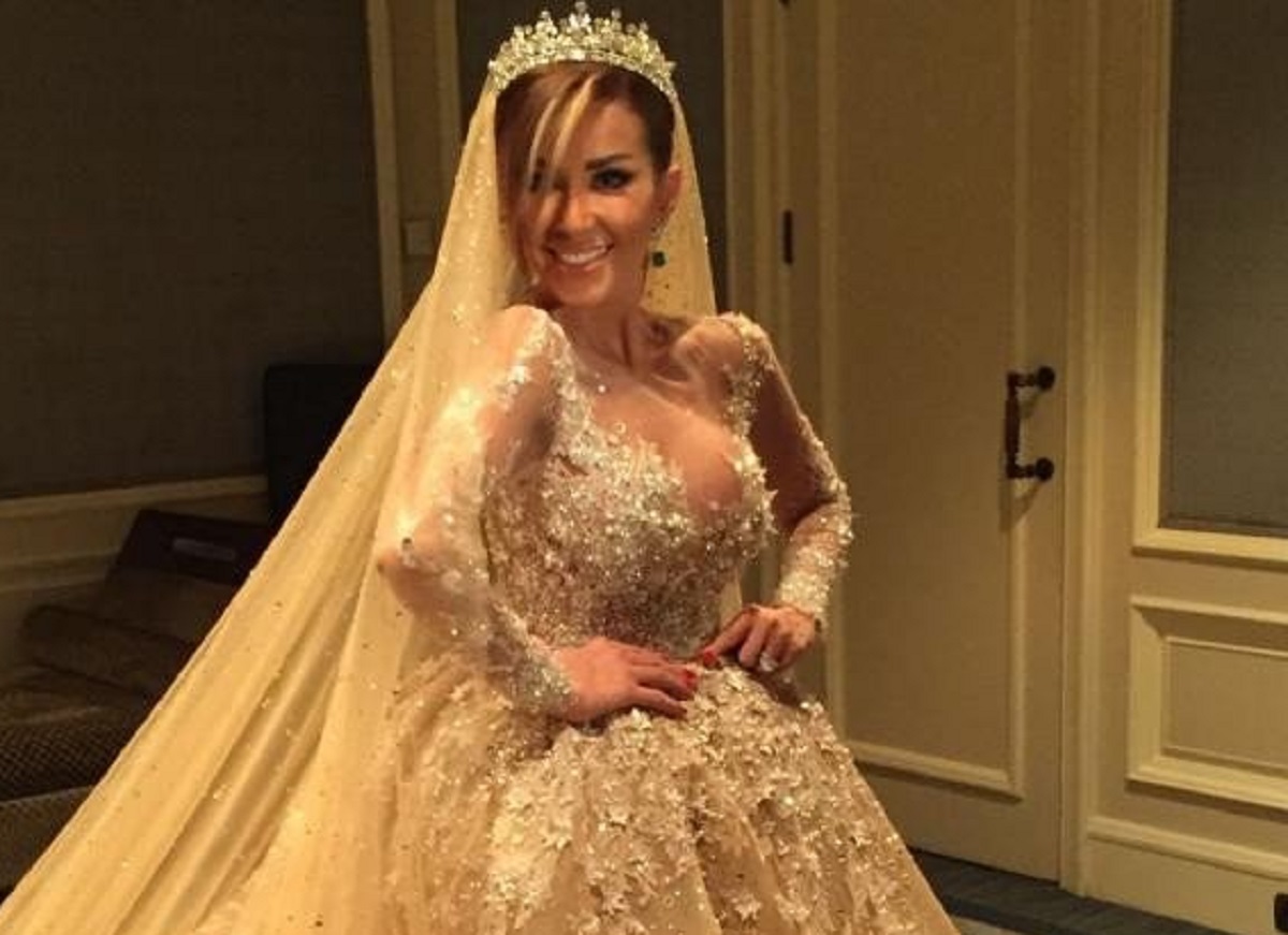 تألقت انجي بفستان جميل تم تصميمه خصيصًا لها على يدالمصمم نديم أوليفير لبوتيك "لابورجوازي" ، وهو مطرز بالكامل بالألماس البراق حيث بدت انجي بغاية الأناقة والجمال، وارتدت عليه تاج كبير لتصير أشبه بالملكة. وقد قامت باستبدال فستانها بفستان آخر لا يقل جمالا عن الاول.