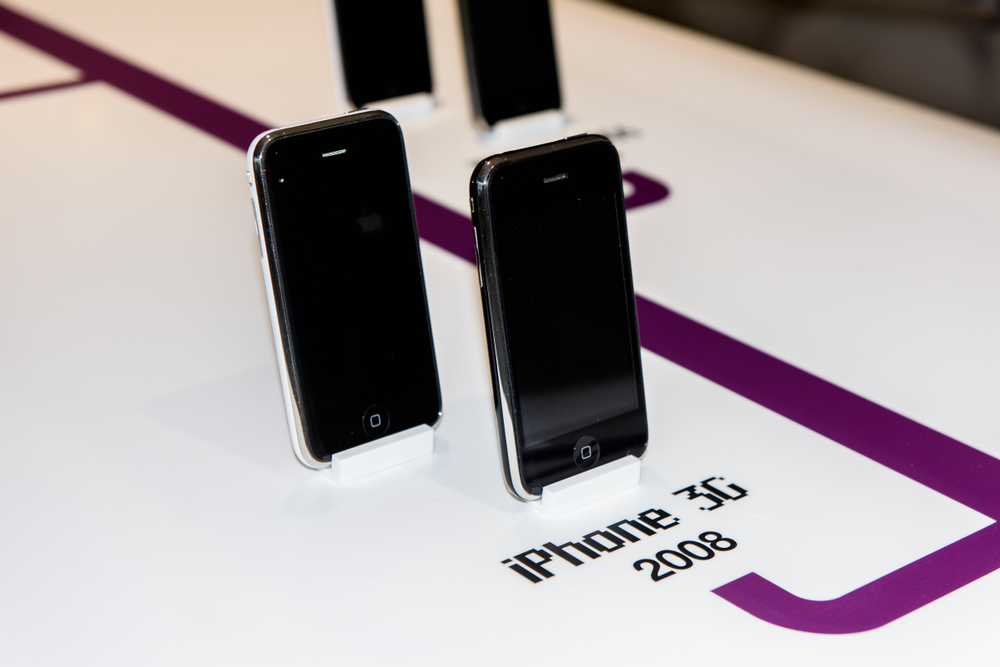 هاتف آيفون: أحدث أول هاتف لشركة آبل عام 2007 ثورة في عالم الهواتف الذكية وتسبب في تحول الصناعة وأطلق عليه اسم آيفون ، حيث احتوى الهاتف على زر القائمة الرئيسية، والتي أصبحت علامة مميزة لهواتف الشركة، مع إطار معدني خلفي، وشاشة عرض بحجم 3.5 إنش تعمل باللمس السعوي وبدقة 480×320 بيكسل وبكثافة 163 بيكسل بالإنش.