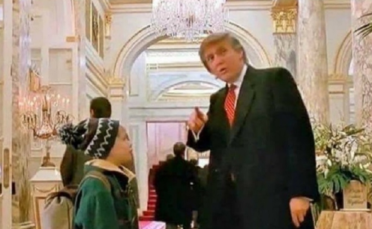 ظهر ترامب خلال الفيلم الأمريكي"Home Alone".كـ "كومبارس"، حيث ظهر وهو يقف مع الطفل "ماكولي كولكن"فانشرت صورة ساخرة من الفيلم تحمل جملة"قبل ما تفقد أملك في الحياة تذكر انه هالزلمة الي كان كومبارس بفيلم Home Alone يشغل منصب رئيس أمريكا حاليا".