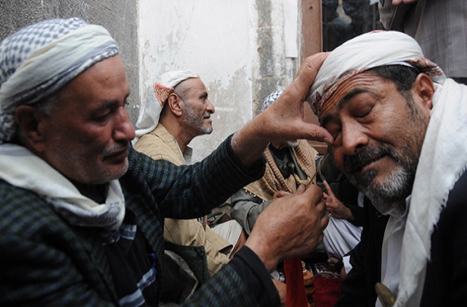 تكحيل العيون في اليمن: في الجامع الكبير يجلس مجموعة من كبار السن يحملون مكحلة وأمامهم يتزاحم عشرات الأشخاص ينتظرون دورهم في تكحيل أعينهم وتعد هذه العادة من أبرز سمات استقبال رمضان اضافةً إلى التعطر بماء الورد.