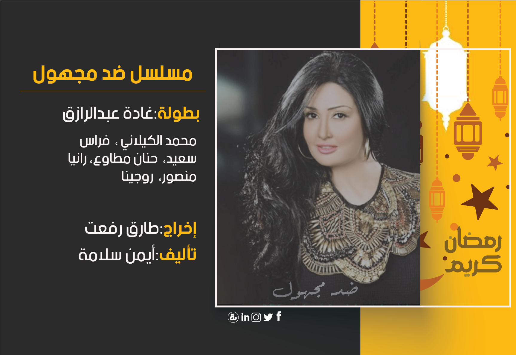 ضد مجهول: تدور الأحداث حول (ندى) وهي موظفة بنك تنتمي للطبقة المتوسطة لديها مشاكل مع زوجها بسبب ظروف عملها، وهو ما جعله يطلقها، ويحرمها من ابنتها، وتزداد الأمور صعوبة عليها عندما تتعرض ابنتها للاغتصاب