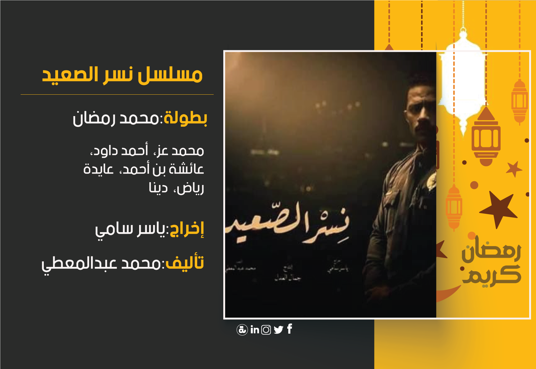 نسر الصعيد: تدور أحداثه حول الضابط الصعيدي "زين" والذي يخدم فى القوات المسلحة، يحبه الجميع فى منطقته، ويعتبرونه القدوة فى جميع المجالات، شهم، جدع، ابن بلد، رجل يتحمل المسؤولية ويتم قرار نقله إلى سيناء لمحاربة الإرهاب.