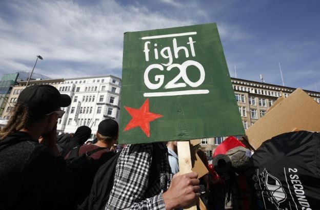 يتظاهر الآلاف بطرق مبتكرة في مدينة هامبورغ الألمانية احتجاجًا على انعقاد قمة مجموعة العشرين التي تستضيفها المدينة في وقت لاحق من الشهر الجاري، وتعتبر المجموعة منتدى للتعاون الاقتصادي والمالي بين هذه الدول وجهات ومنظمات دولية تلعب دورًا محوريًا في الاقتصاد والتجارة في العالم وتجتمع سنويًا في إحدى الدول الأعضاء فيها.