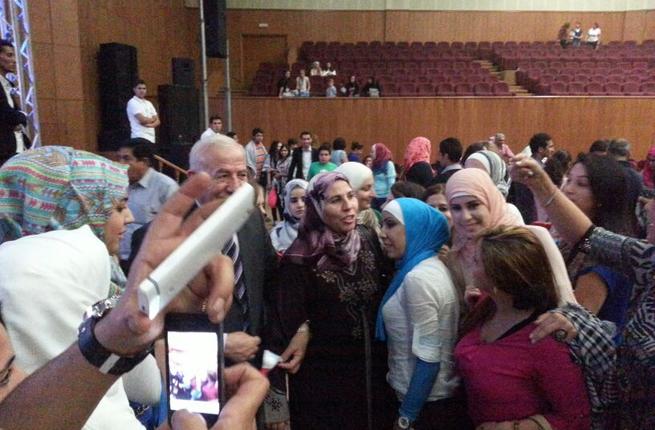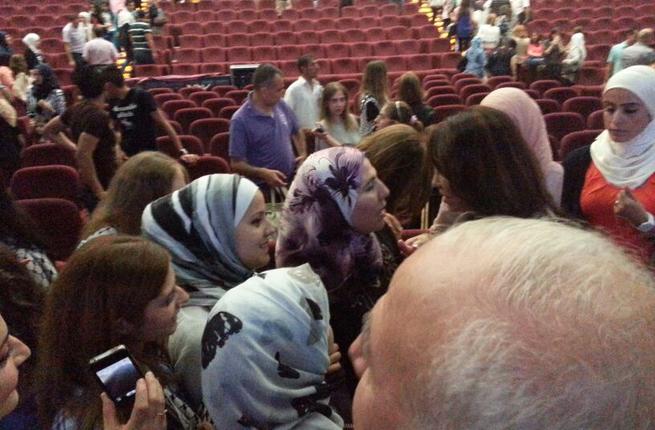 تهافت الجمهور بعد الحفل للسلام والترحيب بالحاجة "أم شادي" والتقاط الصور معها