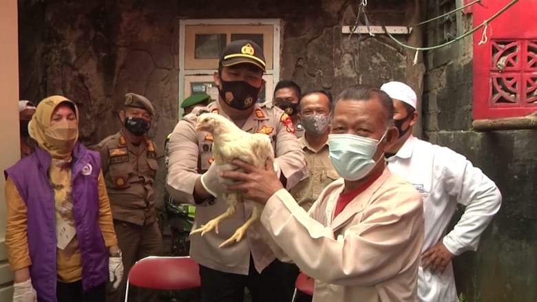 إندونيسيا: قررت بلدة سيانجور بجاوة الغربية منح الدجاج الحي لكبار السن الذين يتلقون الجرعة الأولى من اللقاح.
