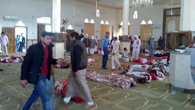 ويمثل هذا الهجوم أكثر الحوادث الإرهابية دموية في تاريخ مصر، ولم تعلن أي جهة مسؤوليتها عن الهجوم، إلا أن أصابع الاتهام موجهة نحو تنظيم داعش في ولاية سيناء المسؤول عن كافة هجمات شمال سيناء السابقة.