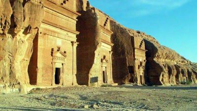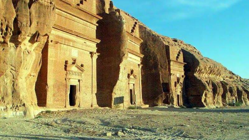 A row of tombs from the al-Khuraymat group, in the archaelogical Nabatean site of Mada'in Saleh. (Wikipedia)