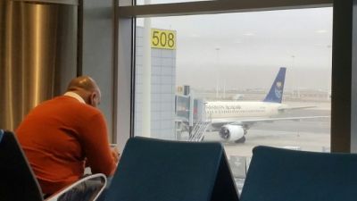 An expat waits for his flight at the King Khalid International airport on February 16, 2017. (Fayez Nureldine/ AFP)