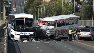 One bus careened off a bridge and the second bus overturned, the source said.