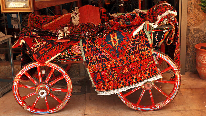 A 450-year-old lodge converted into a carpet shop in Turkey’s central Cappadocia region attracts tourists with its unusual decoration.