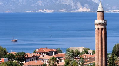 The minaret is part of the Yivli Minaret Mosque, which was constructed on the orders of Alaaddin Keykubad I, the Seljuks Sultan who ruled between 1220 and 1237.