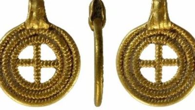 The gold piece has a central cross motif and probably belonged to a woman of 'high social status', according to experts.