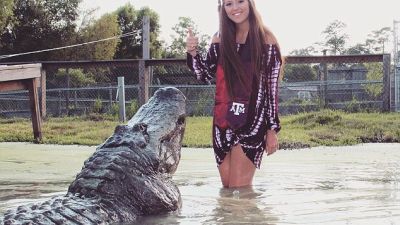A Texas A&M senior featured an unusual guest in her graduation photos: a 1,000 pound alligator.