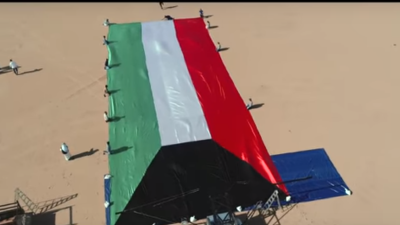 A Chevy truck pulled a 4,690 square foot Kuwaiti flag a distance of more than 328 feet to break a Guinness World Record.