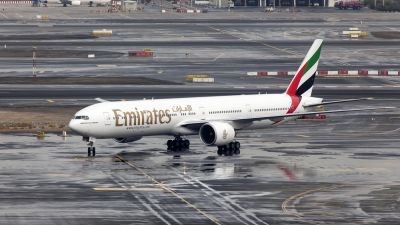 An Emirates Boeing 777 airplane was forced to take off after failing to land safely during a storm in the UK.